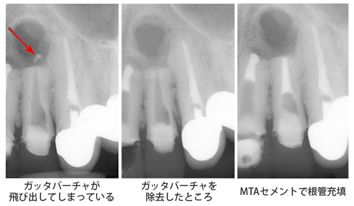 今回は前回の続きで、根の外に飛び出てしまったガッタパーチャをOKマイクロエキスカを用いることによって、除去することが出来た症例をお見せします。