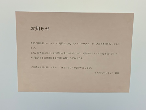 上記のように感染対策は以前から行っておりましたが、今月から、当院の扉にこの張り紙をさせていただき、更なる感染対策の協力を患者様にもお願いしております。