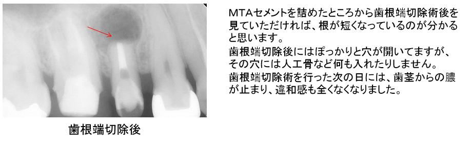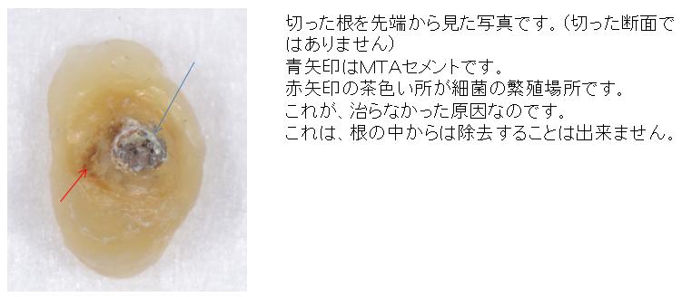 根の先端を3ミリほど切った状態です。この後しばらくして症状は全くなくなりました。