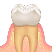初めて歯が生えたときと同じような強固な付着機能を持つ歯周組織の再生を促し、健康な歯周組織を取り戻します。