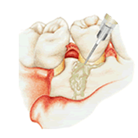 エムドゲインゲルという塗布剤によって歯周組織を回復させる方法です。幼少期に歯が生えてくる際に重要な働きをするたん白質の一種でできており、歯の発生過程に似た状況を再現します。