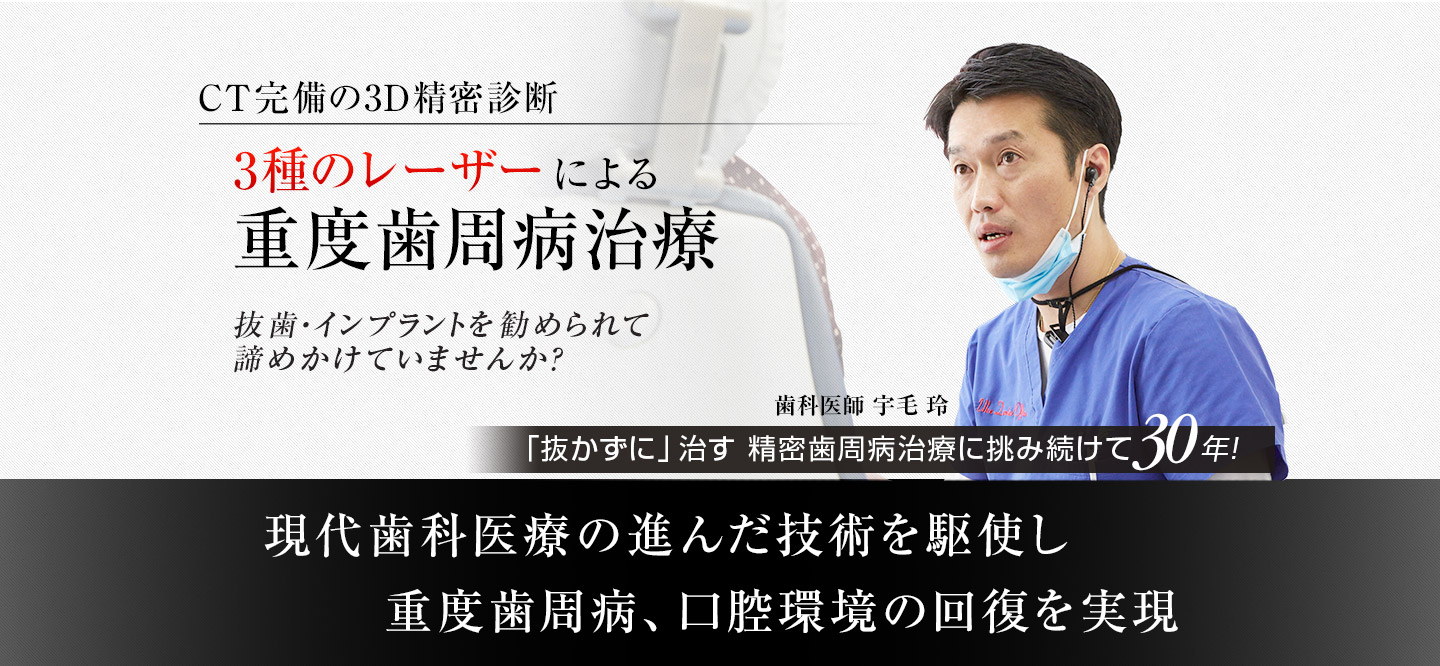 当院の歯周病治療「Oral Revive プログラム」は、他院で抜歯宣告された重度の歯周病の方にも可能な限り抜かずに治療することを実現する、これまでの豊富な実績から生み出されたプログラムです。